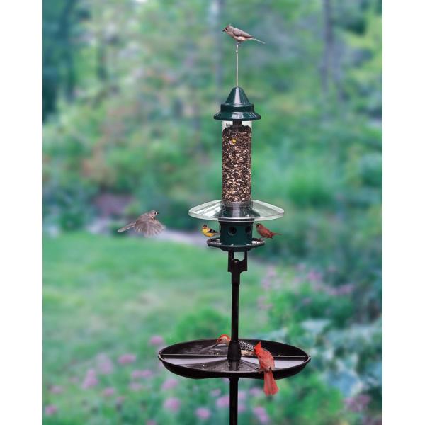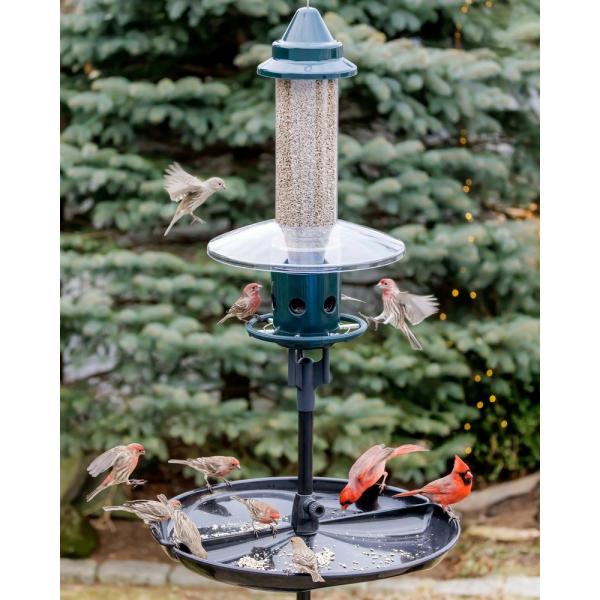 This feeder and pole kit sets up in minutes, inviting both feeder and ground birds to dine harmoniously. Its Weather Guard shields seed ports from rain, snow, and ice, while the Seed Buster Tray keeps the mess off the ground. Please note that the Seed Buster Tray is not squirrel-proof.