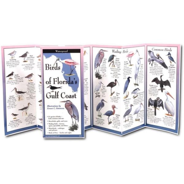 Folding Guides offer instant access to just what you need to know. Indestructible lamination water and beach proof. 62 bird species, both common and exotic, commonly seen in Florida Gulf Coast, from the Alabama border all the way down to the Everglades City. Includes shorebirds, wading birds, beach species, gulls and terns, ducks, and birds of prey. Species selection and captions by local experts. Illustrations by Ernest C. Simmons.
